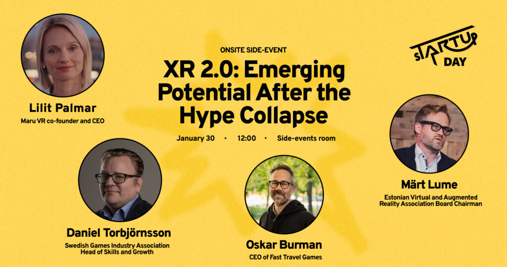 Reedel, 30.01 kell 12 kõrvalürituste ruumis XR 2.0: Emerging Potential After the Hype Collapse Pärast ülepaisutatud ootuste taandumist on XR sisenemas realistlikumasse ja sisukamasse arengufaasi. Daniel Torbjörnsson (Rootsi mängutööstus) juhib arutelu investorite ja XR-valdkonna visionääridega selle üle, mida turu korrigeerumine on tegelikult esile toonud, kus tekib reaalne väärtus ning millise kuju võtab XR-i […]
